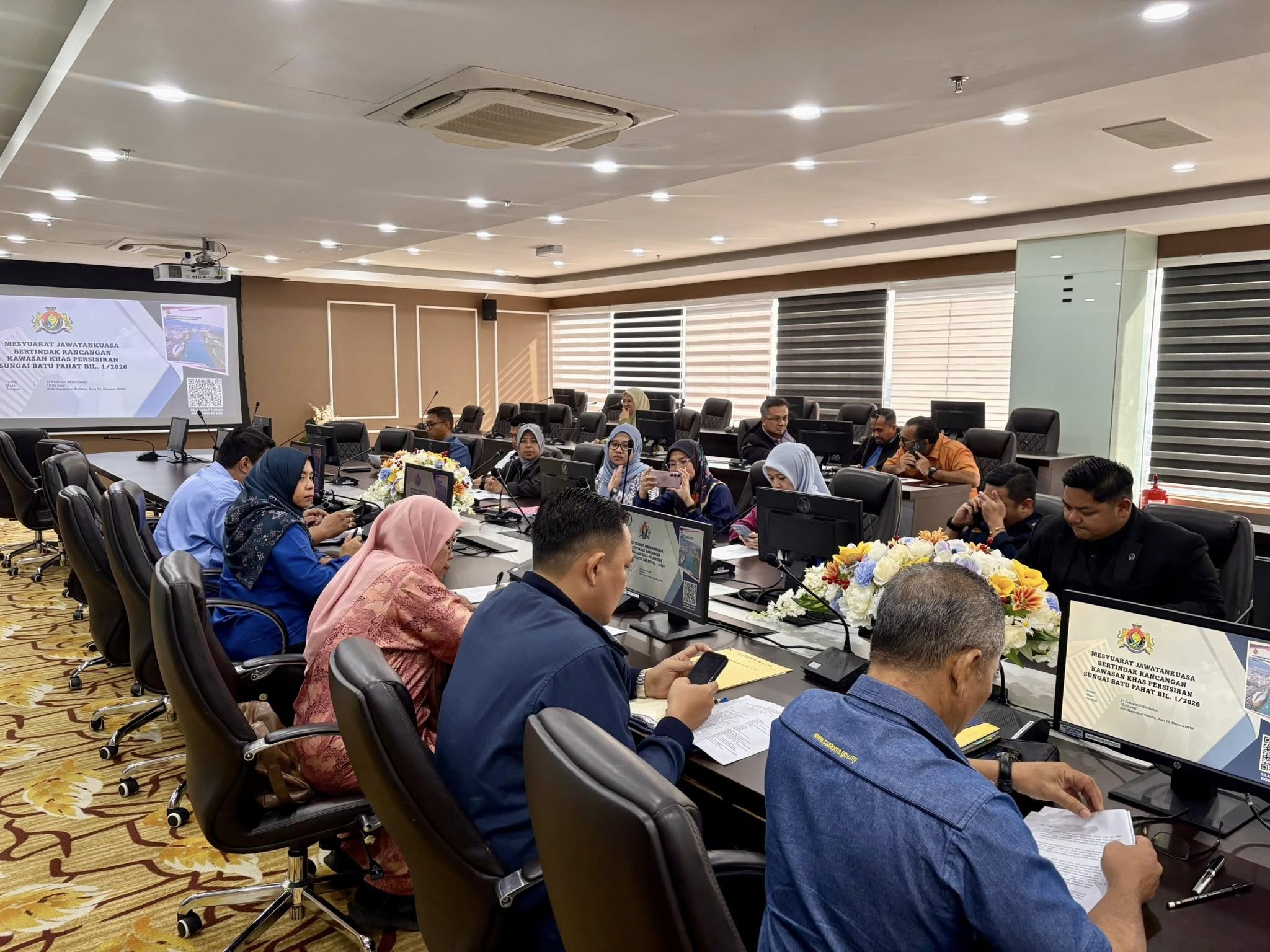 25 FEBRUARI 2026 | RABU - Majlis Perbandaran Batu Pahat (MPBP) telah mengadakan Mesyuarat Jawatankuasa Bertindak Rancangan Kawasan Khas (RKK) Persisiran Sungai Batu Pahat Bil. 1/2026 pada 25 Februari 2026 bertempat di Bilik Mesyuarat Delima, Aras 14, Menara MPBP. Mesyuarat ini telah dipengerusikan oleh Yang Dipertua MPBP, Tuan Haji Mohd Nazid bin Jasiman, turut hadir bersama Setiausaha MPBP, Encik Abdul Razak bin Ithnain. Turut serta hadir beberapa barisan Ahli Majlis dan wakil agensi-agensi teknikal yang melibatkan Pejabat Daerah Batu Pahat, Pejabat Tanah Batu Pahat, Jabatan Pengairan dan Saliran Batu Pahat, Jabatan Kerja Raya Batu Pahat, Pejabat Laut Batu Pahat, Pejabat Imigresen Daerah Batu Pahat, Jabatan Kastam DiRaja Malaysia, Pusat Pemeriksaan Ikan ILKM Batu Pahat dan wakil daripada JBI Logistics Sdn Bhd..